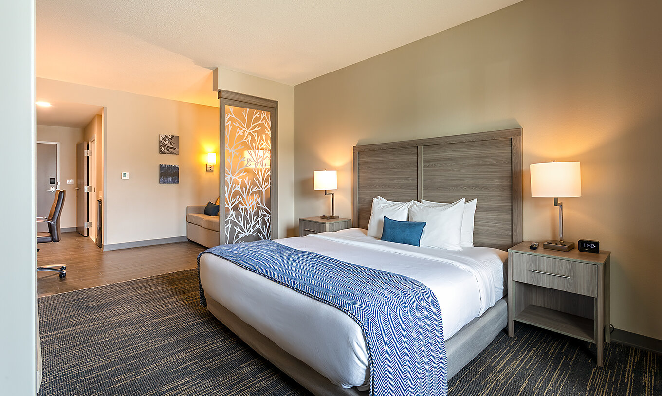 Descubra los espacios amplios y luminosos, incluyendo salas de estar, dormitorio, almacenamiento y escritorio. Suites equipadas con dos camas queen size o una cómoda cama de matrimonio king size.