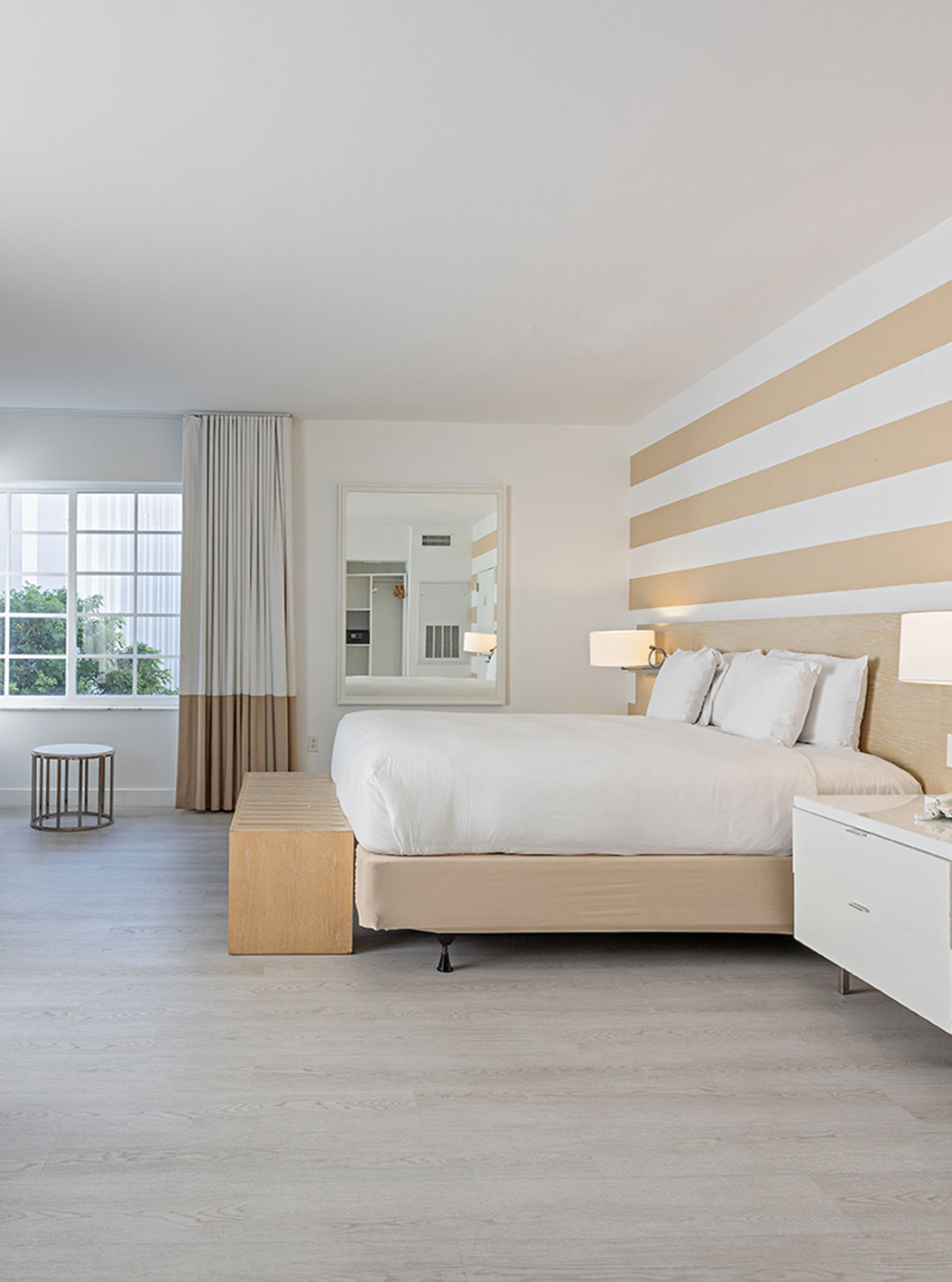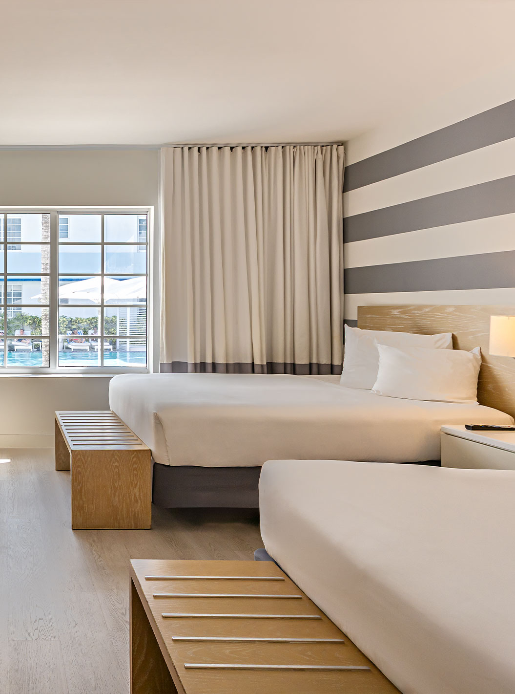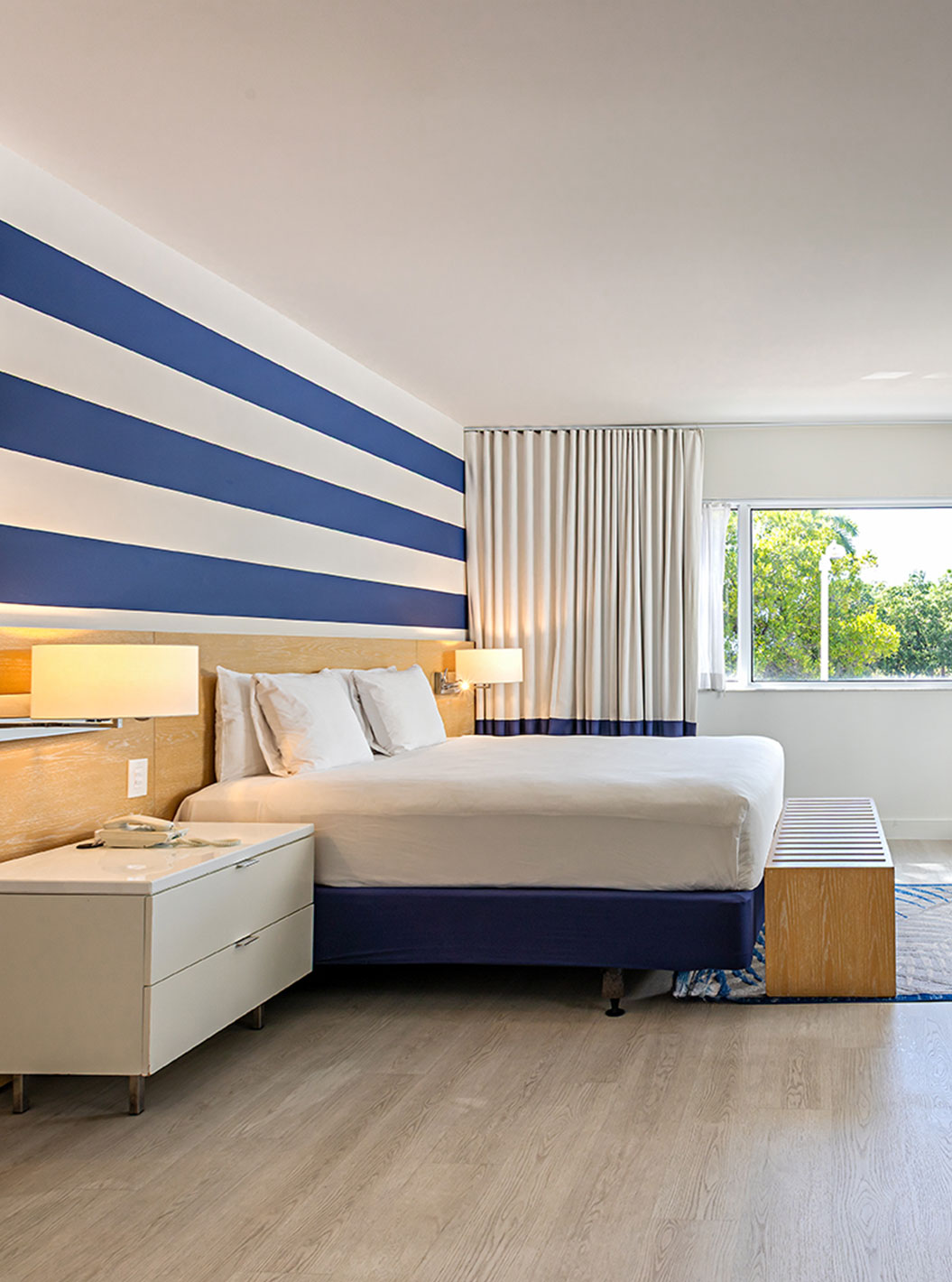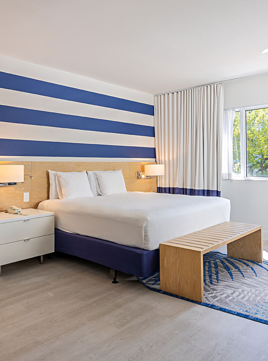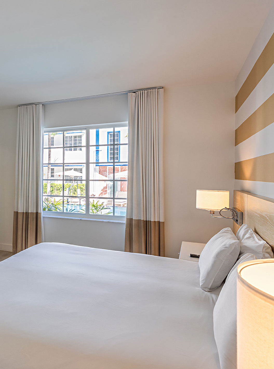 Venga a conocer el Pestana South Beach Miami, un Art Deco Boutique Hotel en Miami formado por 4 edificios con fachadas blancas y azules ubicado en plena Miami Beach, a 5 minutos de la playa de South Beach y a solo 9 minutos a pie de Lincoln Road, un verdadero centro comercial al aire libre.