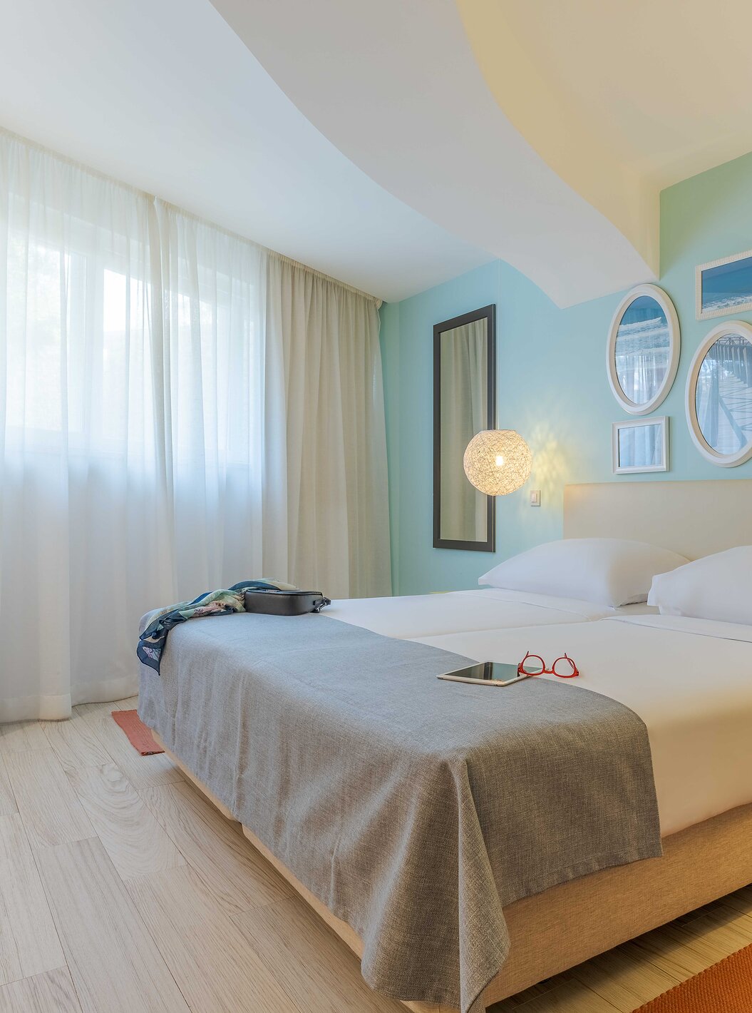 Das Hotel überrascht mit inspirierenden Formen, Dimensionen, Farben und Mustern, die in verschiedenen Details vom Eingangsbereich bis in die weitläufigen Gartenanlagen zum Ausdruck kommen.