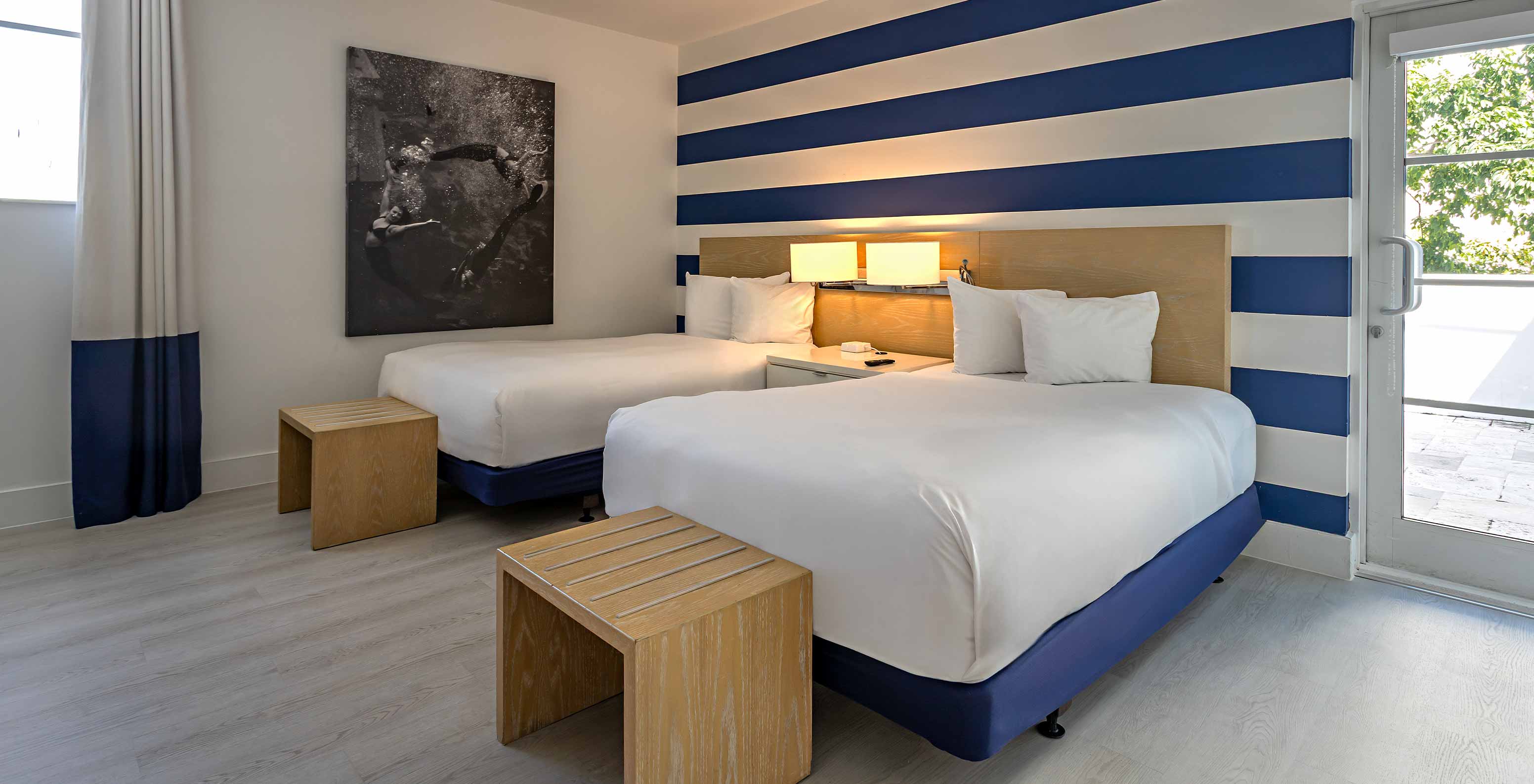 The Classic Double at Pestana Miami has two beds and minimalist decor