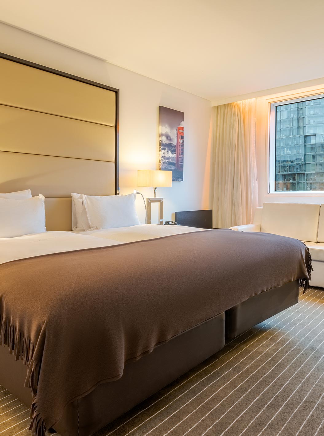 El hotel dispone de 217 habitaciones amplias y modernas, incluidas suites de uno y dos dormitorios, todas equipadas con bañera y ducha independientes. La comodidad de las camas king size o twin deluxe es una característica distintiva que conquista tanto a los viajeros en busca de ocio como a los equipos de fútbol nacionales e internacionales que ya han elegido el Pestana como su hogar en Londres.