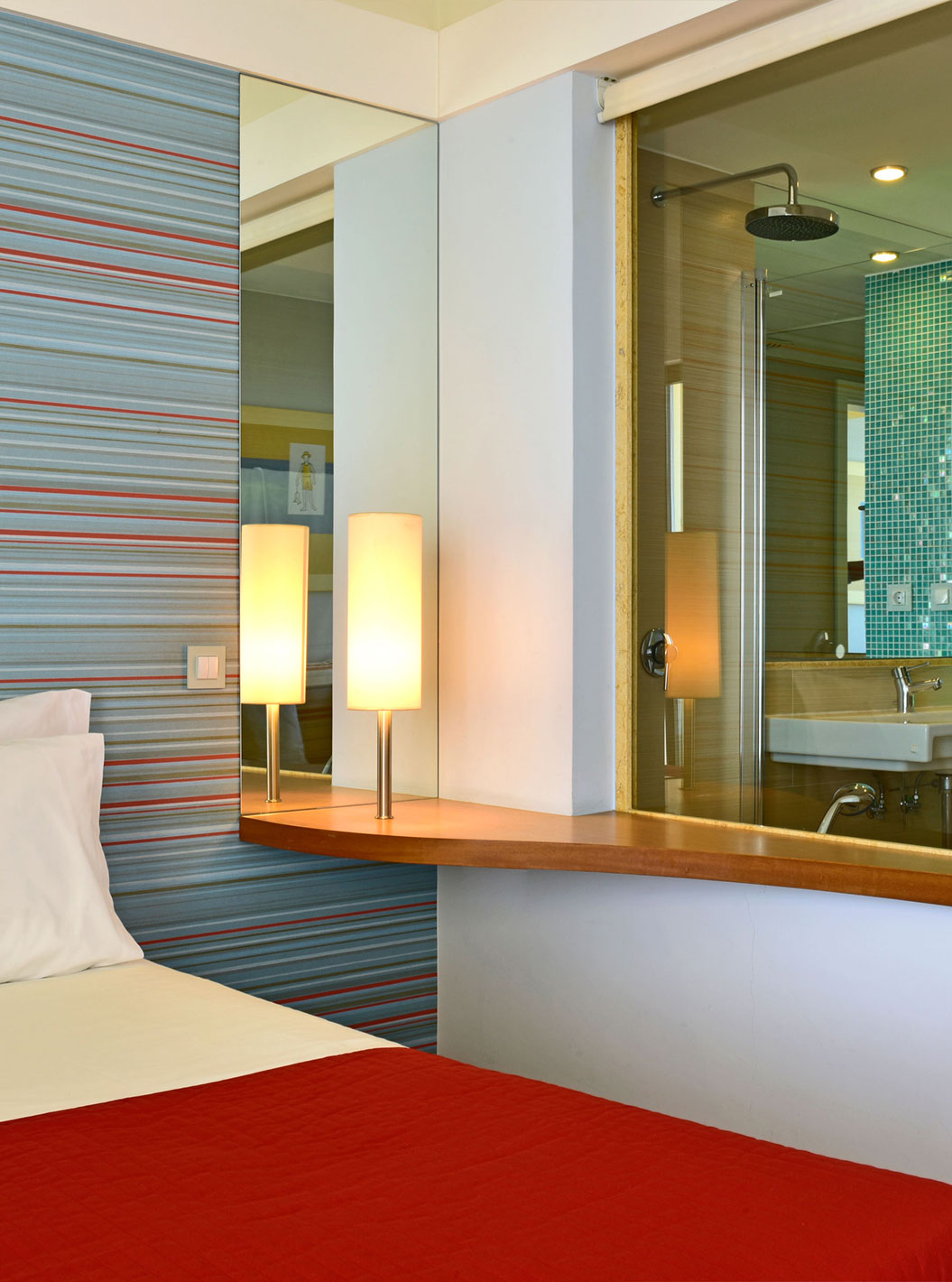 Toutes les chambres sont décorées dans un style minimaliste et dans des tons assortis aux couleurs de la mer. Elles disposent également d'une chaise longue qui peut être transformée en lit supplémentaire. L'hôtel dispose également de chambres communicantes, parfaites pour les familles nombreuses.