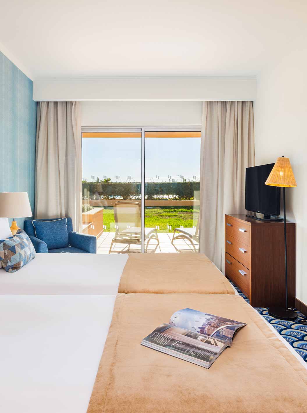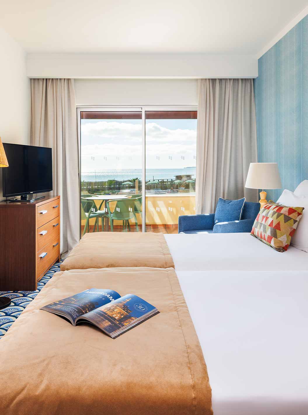 De Villa 3 Kamer Premium met uitzicht op de zee van Pestana Alvor Beach Villas heeft een slaapkamer met twee bedden