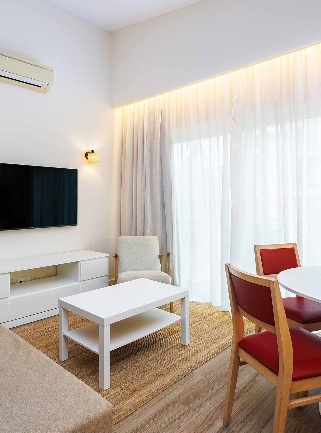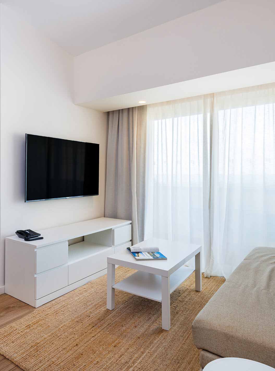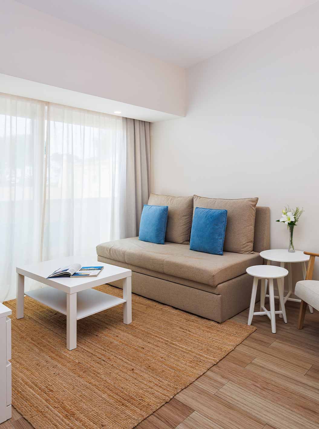 Alle villa's hebben een ingerichte kitchenette, een ruime woonkamer en een terras of balkon.