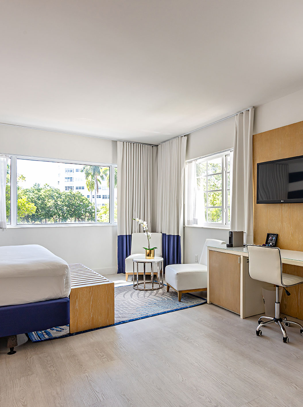Bezoek het Pestana South Beach Miami, een Art Deco Boutique Hotel in Miami, bestaande uit 4 gebouwen met witte en blauwe gevel in het midden van Miami Beach. Het ligt op slechts 5 minuten van het water van South Beach en slechts 9 minuten lopen van Lincoln Road, een echt openlucht winkelcentrum.