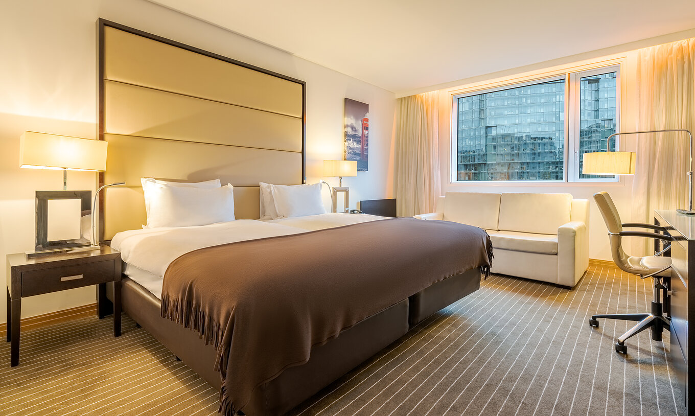 A qualidade dos quartos e as suas comodidades garantem que fica hospedado num hotel 4 estrelas de primeira classe. As generosas camas king size ou twin deluxe oferecem um excelente conforto e descanso, uma característica distintiva que impressionou muitos hóspedes, incluindo equipas de futebol locais e internacionais.