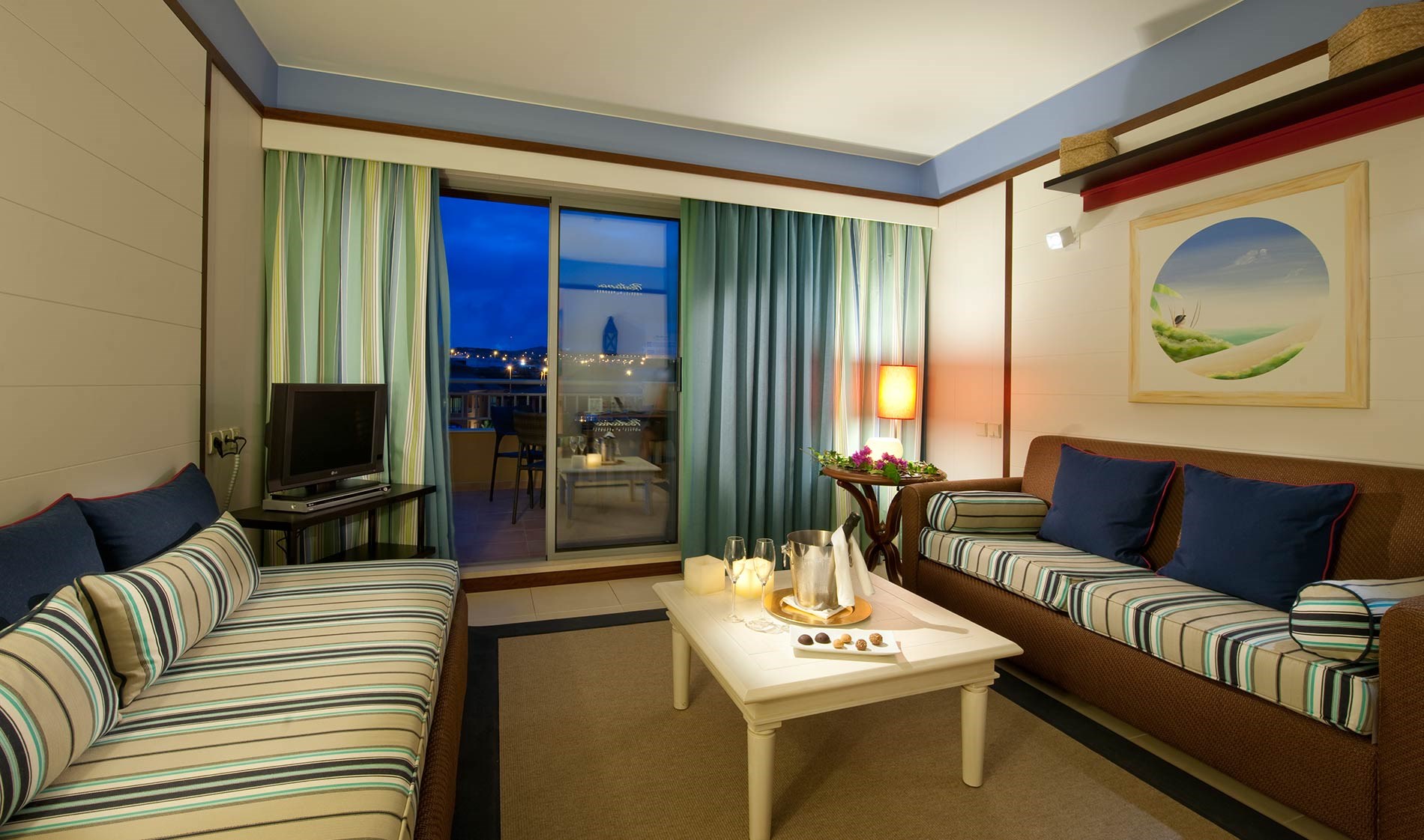 A suite tem uma sala de estar privada separada do quarto com cama king-size. O lounge é espaçoso e confortável, inclui um sofá, mesa e cadeiras. Pode acomodar até dois adultos e duas crianças. Inclui cofre digital e secador de cabelo.