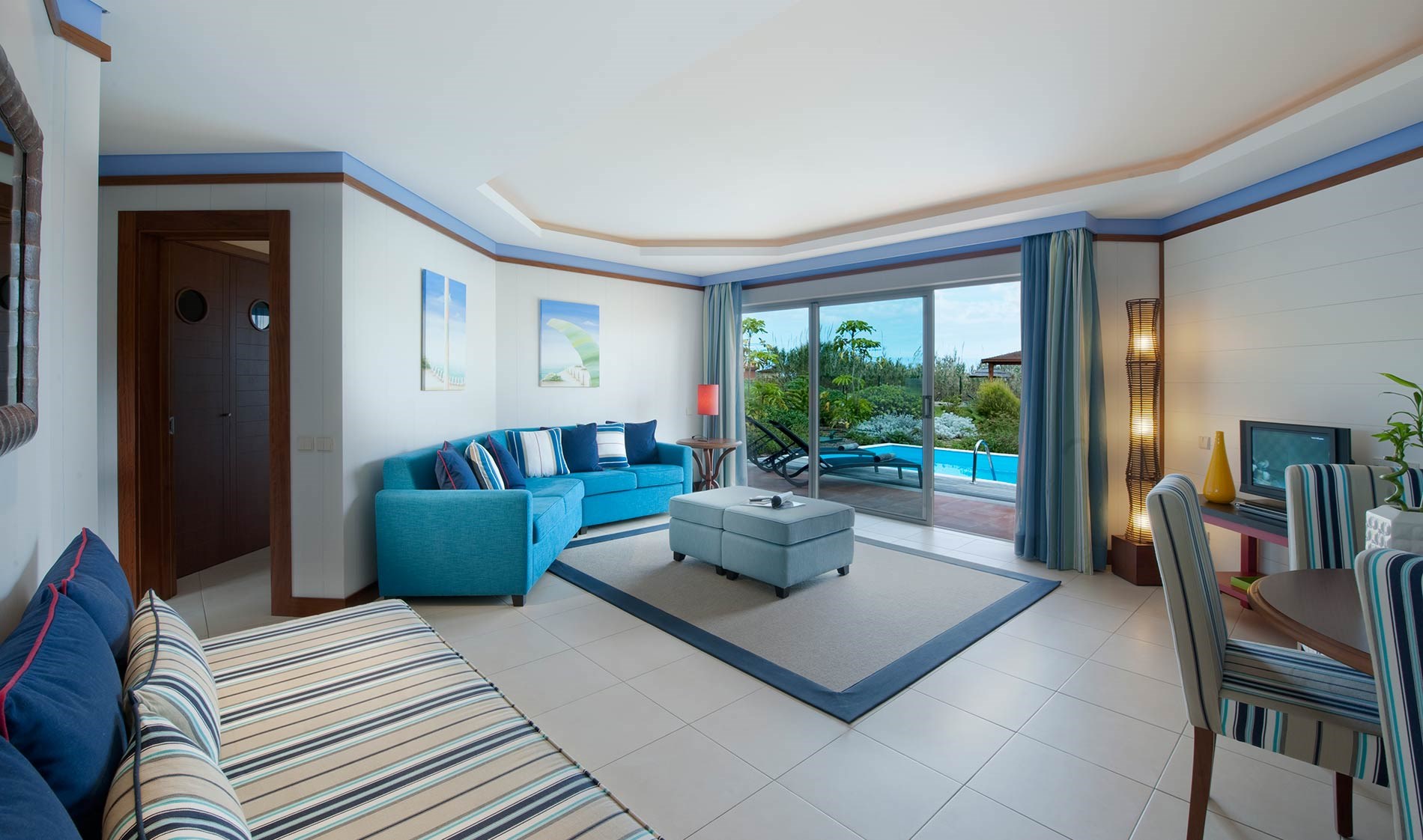 tons da praia e têm vista para a piscina ou para o jardim. Com a brisa que chega do mar ou com o ar condicionado, regule a temperatura e deixe-se embalar.