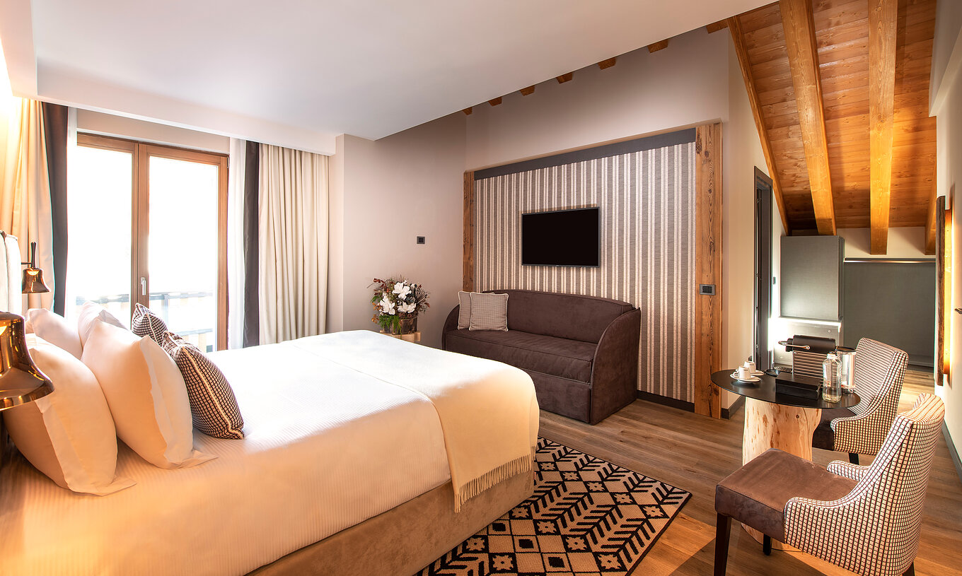 With spacious rooms and suites that maximize natural light, feature fine materials such as wood and stone, and offer breathtaking views of the Alps, Le Massif is the ideal starting point for exploring the highest peak in the Alps. The hotel features a mountain spa with indoor and outdoor water circuits, a fitness center, restaurants, and direct access to the best skiing experiences in Italy. Perfect for those seeking a hotel in the Italian Alps in Courmayeur for skiing, outdoor adventure, or relaxation at high altitude, with the authentic charm of Alpine tradition and the comfort of a luxury hotel.