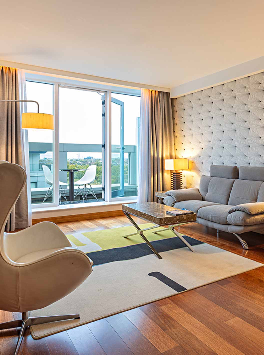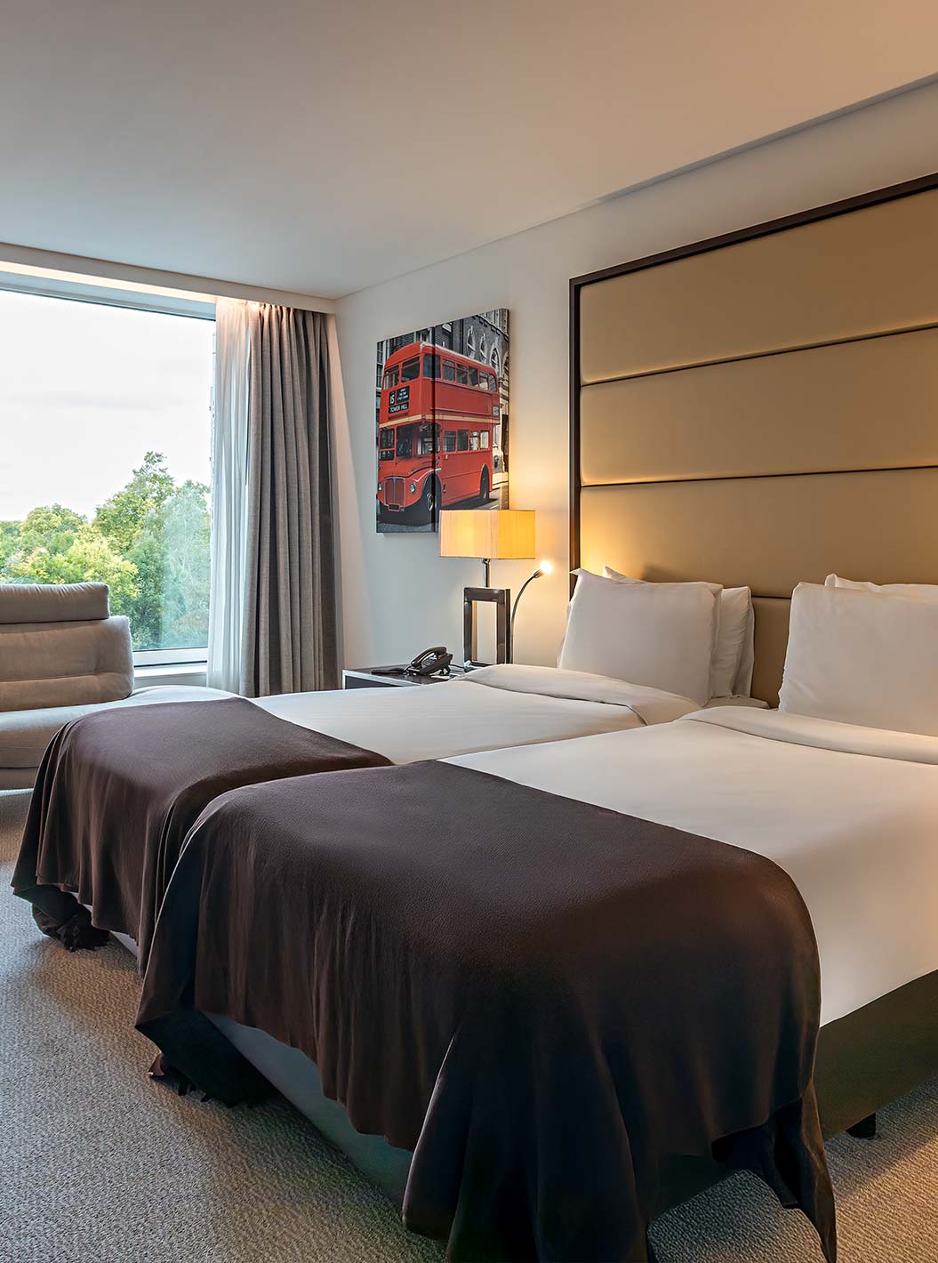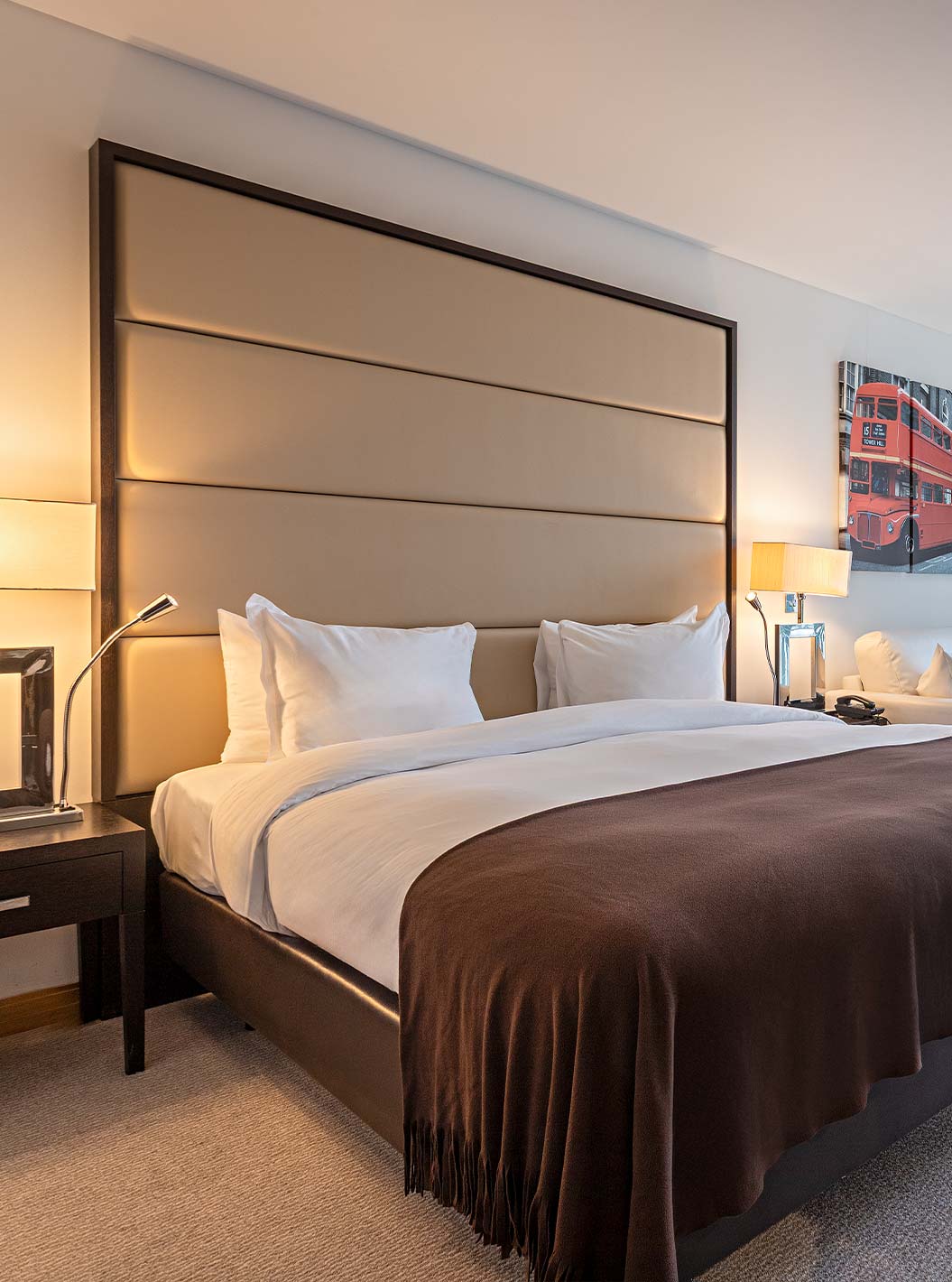 The hotel offers 217 spacious, modern rooms, including one- and two-bedroom suites, all equipped with both a bathtub and a separate shower. The comfort of its king-size and twin deluxe beds has become a hallmark, earning praise from leisure travellers and from national and international football teams who have made Pestana their London home.