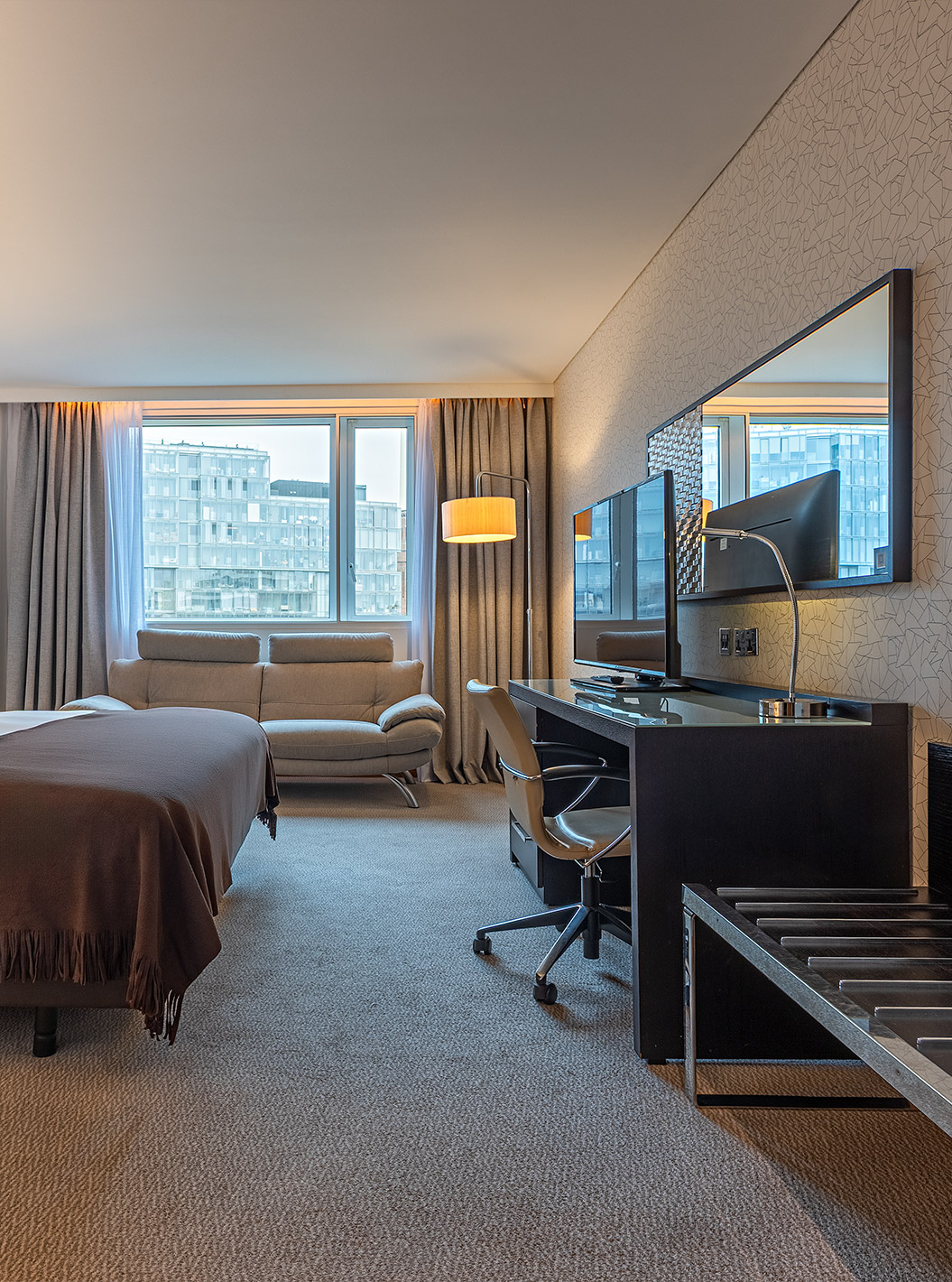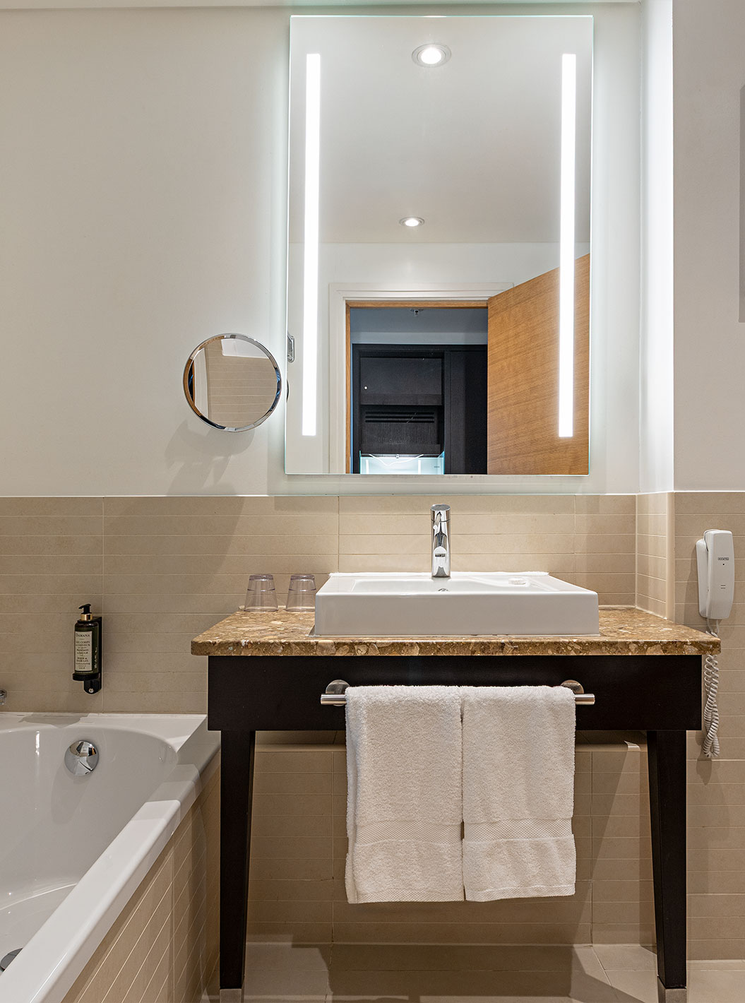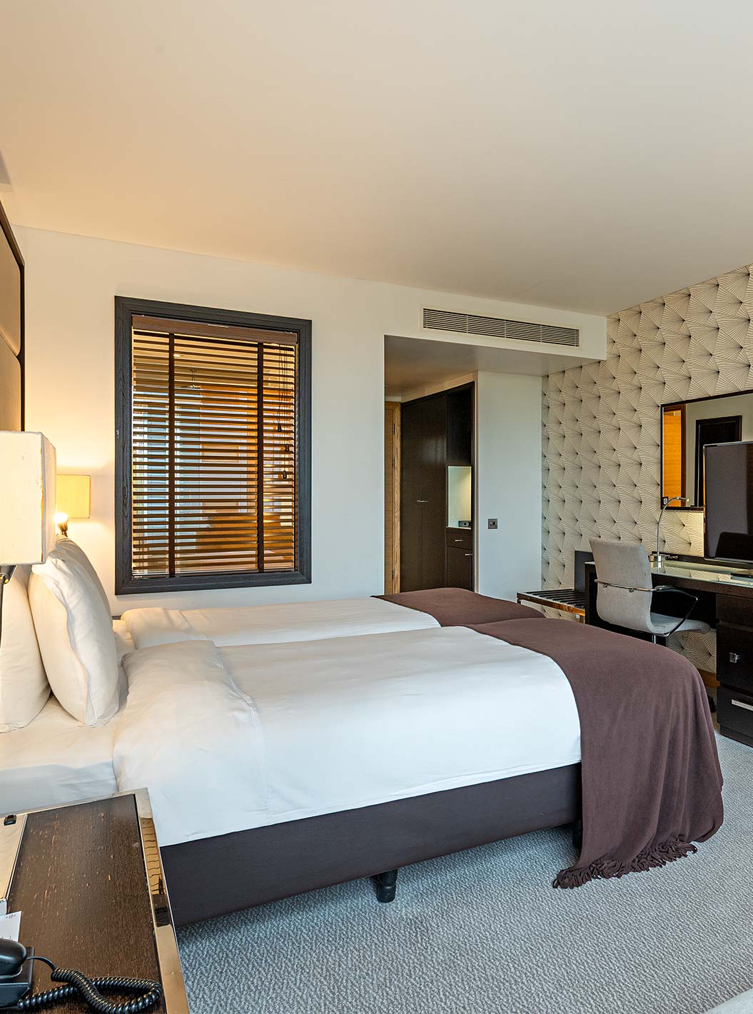 The hotel offers 217 spacious, modern rooms, including one- and two-bedroom suites, all equipped with both a bathtub and a separate shower. The comfort of its king-size and twin deluxe beds has become a hallmark, earning praise from leisure travellers and from national and international football teams who have made Pestana their London home.